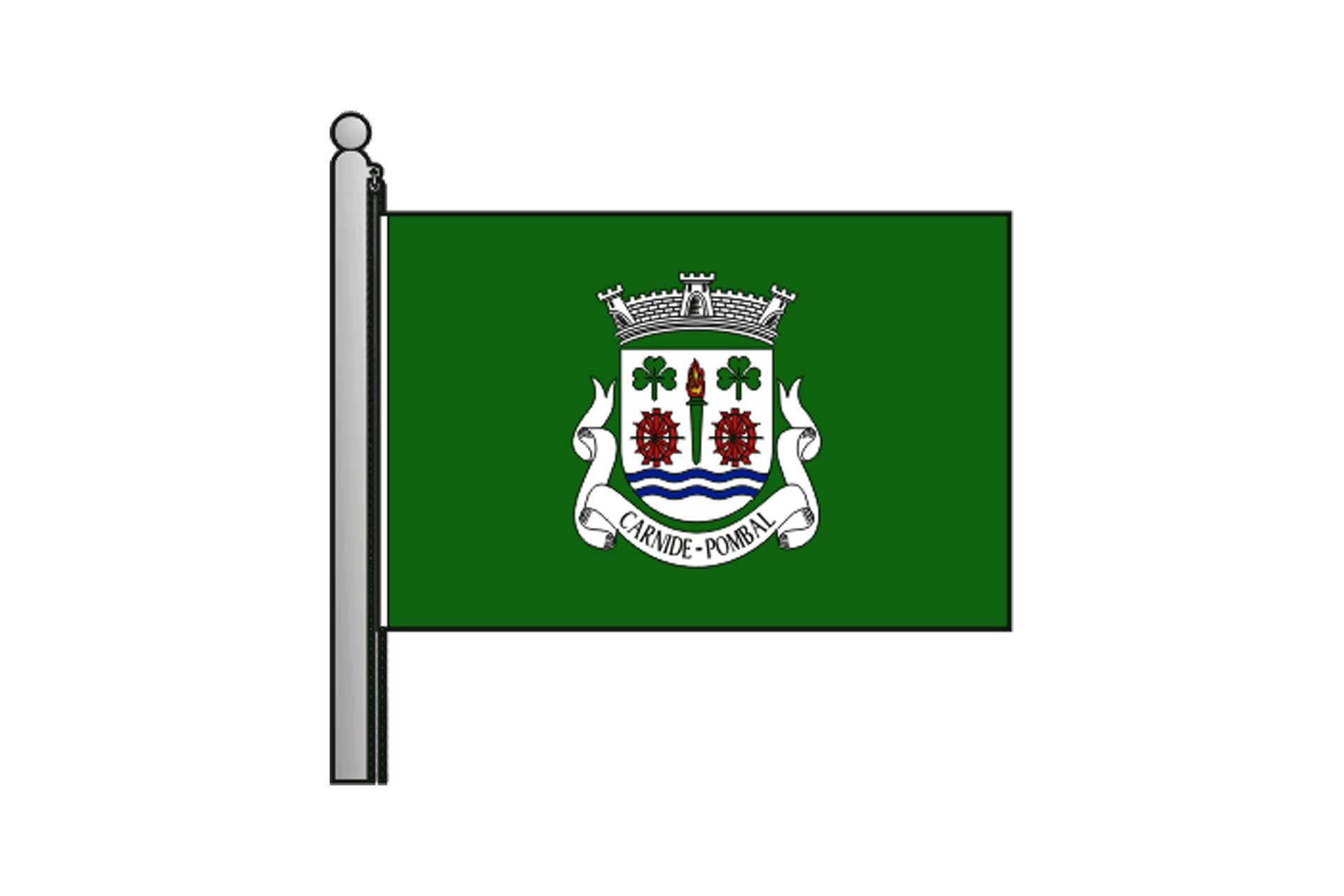 Listel branco com a legenda a negro, em maiúsculas: “ CARNIDE - POMBAL “.