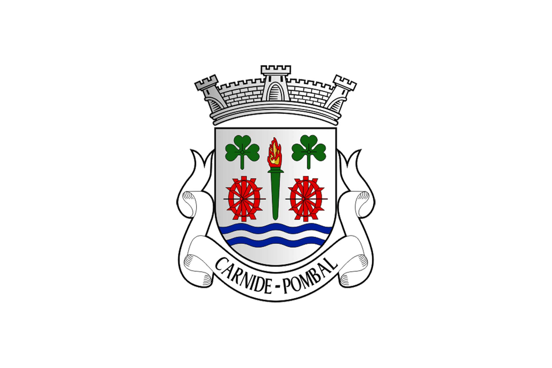 Listel branco com a legenda a negro, em maiúsculas: “ CARNIDE - POMBAL “.